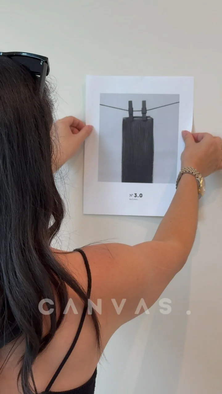 Canvas.™ is a minimalistic color range of hair extensions. It was designed for the modern stylist and salon owner to have hair on hand without a large inventory. With the most popular and highly used colors, the stylist has the creative ability to mix and match for the perfect blend or customize the weft’s color per client.